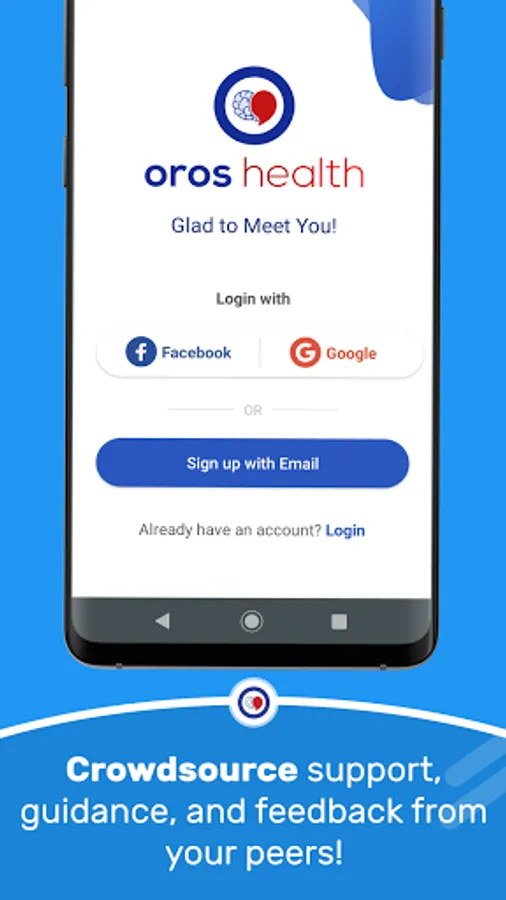 Ask questions and get support, advice, guidance, and recommendations on any mental health topic – all from the exact audience you’re looking for! With Oros Health, we make it quick and easy to get the answers you need and can trust from those who know best - real people. Life is full of questions and unexpected surprises, and with Oros Health, the answers you’re looking for are just a message away. You are never alone!