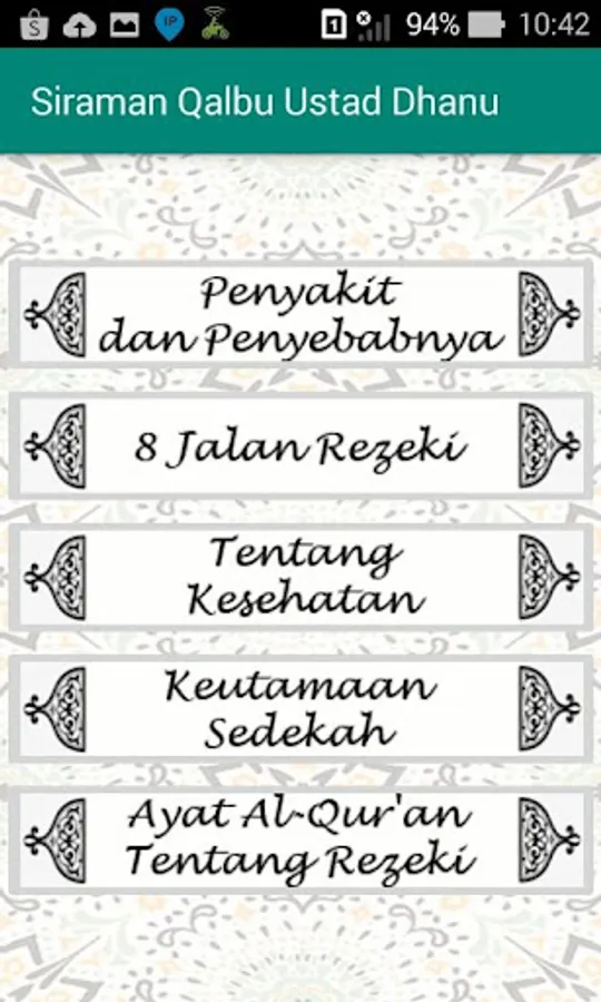 Selain penyakit dan penyebabnya, aplikasi ini juga memberikan informasi seputar kesehatan dan rejeki yang datanya berasal dari Al-Qur'an dan Hadits.