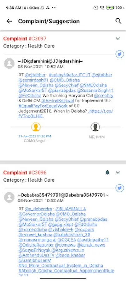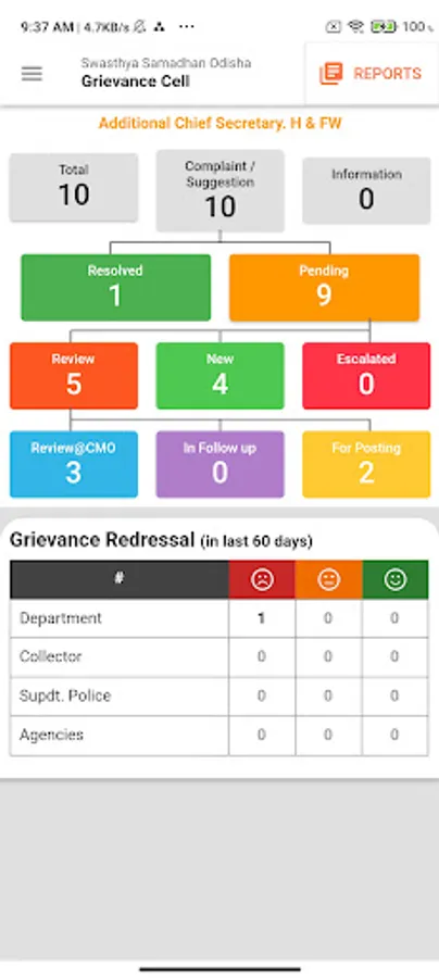 Swasthya Samadhan, Odisha is a one stop grievance management application to be exclusively used by the Department of Health & Family Welfare, Government of Odisha. The application focuses on the quick response from the department authorities on the grievances lodged by the citizens through social media. The application is not for the usage of citizens. Citizens can offer their grievances on Social Media by tagging the Department of Health & Family Welfare. Department authorities can check & reply to the grievances on the go.