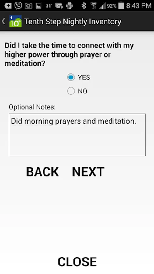 10. Did I take the time to connect with my higher power through prayer or meditation today?
