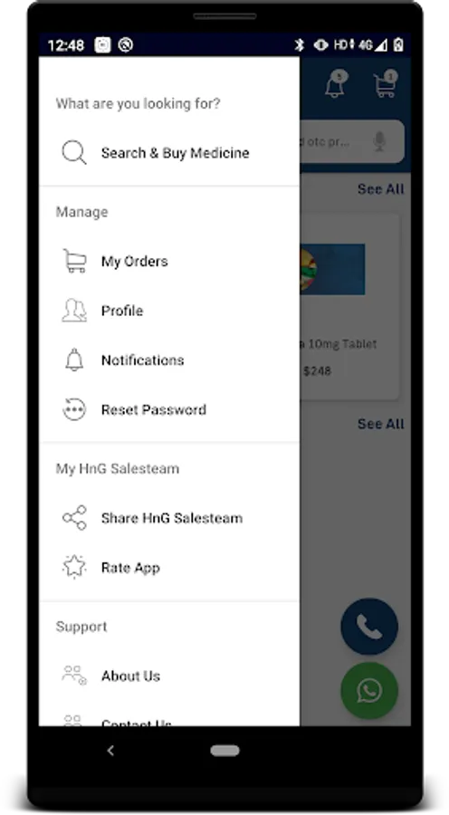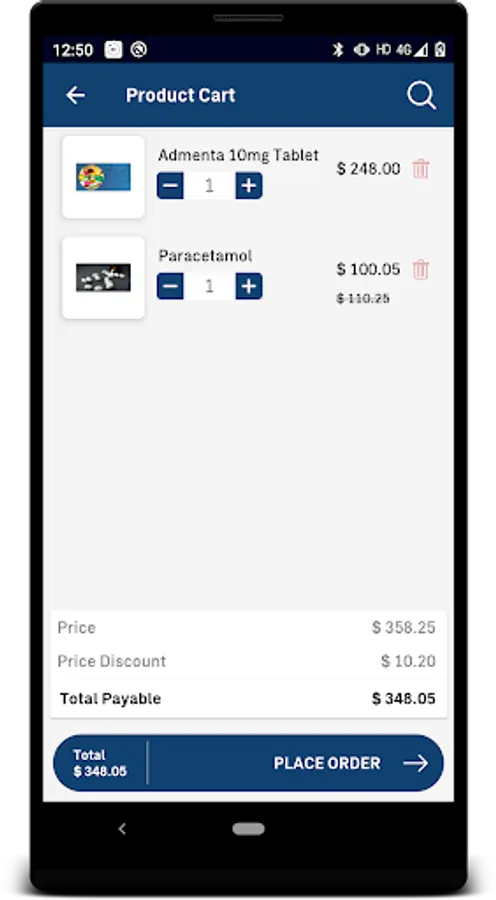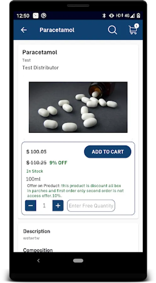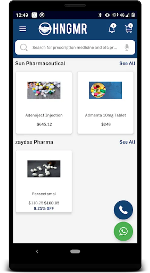 * Can add required medicines directly from the database and add to cart for home delivery.