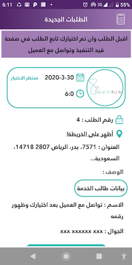 A specialized easy-to-use platform that enables you to request the services of Medical Staff, Nursing, Physiotherapist and Respiratory Therapist in addition to Nutrition Specialists and many other different special healthcare services based on your status & needs , where the healthcare service & care providers conduct the visits at your location accordance with your time and booking ،