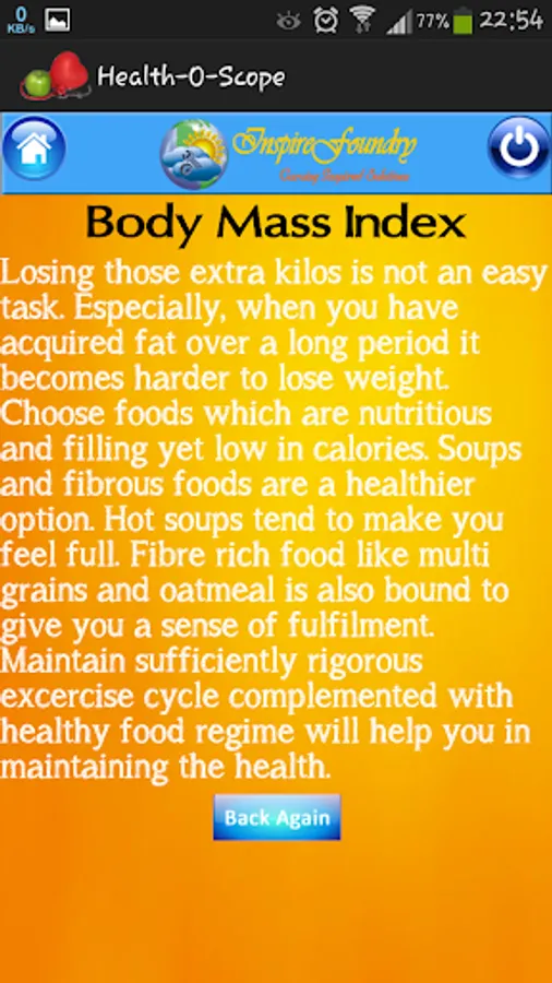 Health-o-Scope is a simple application intended to provide a simple interface to the users to calculate BMI, heart rate and also the healthy diet tips. This version is intended to provide an easy to use solution to start with. Many more functionalities will be added in future versions.