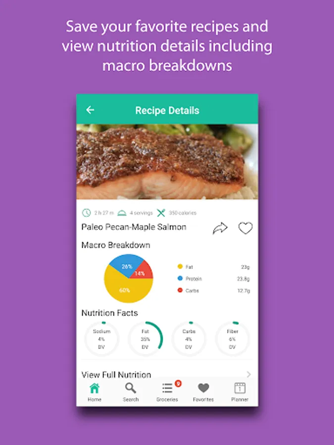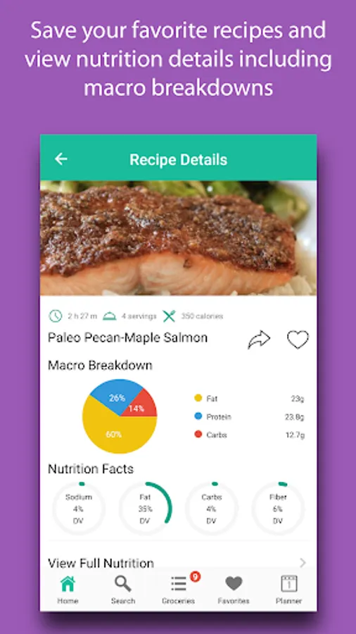 View nutrition facts, macro breakdowns, and cooking directions for any recipe.