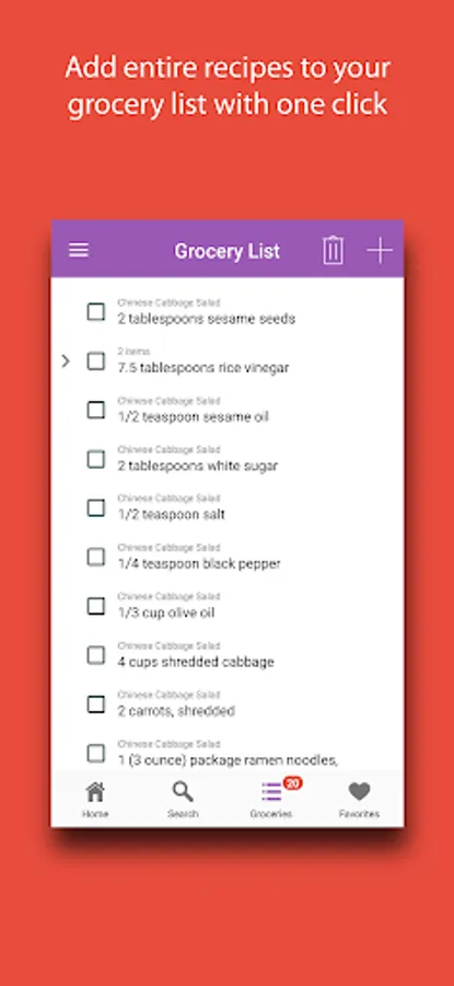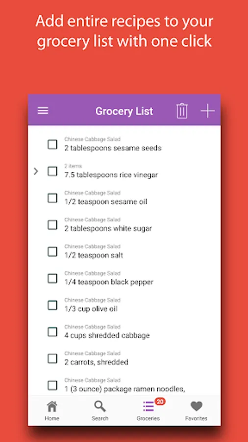 Easily add ingredient details for any recipe to your grocery list.