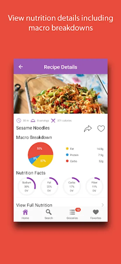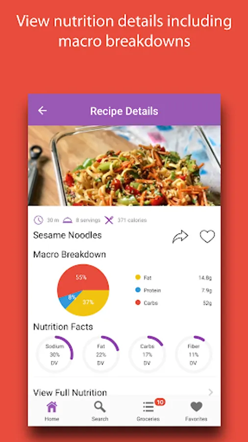 View nutrition facts, macro breakdowns, and cooking directions for any recipe.