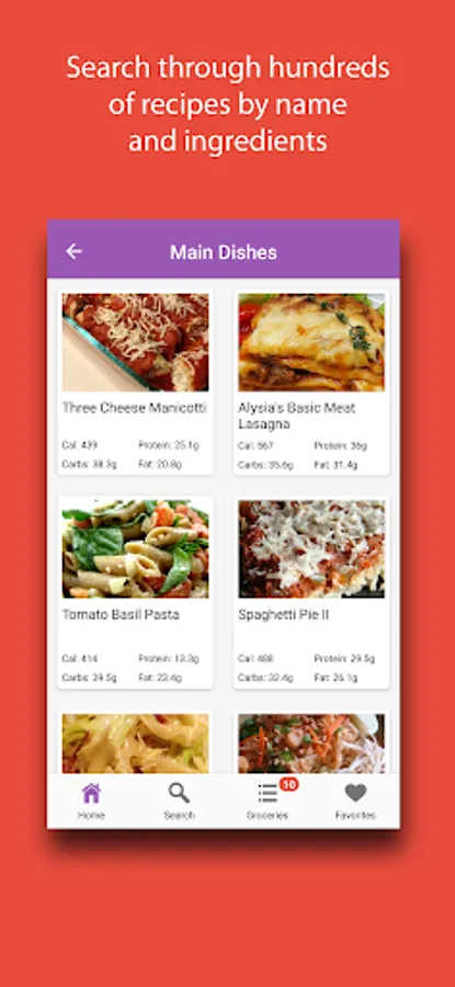 Pasta Recipes is a simple way to browse hundreds of recipes, create grocery lists, and save your favorite meals. Regardless if you are looking for some great pasta dinners or looking to create your own noodles from scratch, Pasta Recipes can help you find exactly what you are looking for. The app includes full nutrition facts, macro breakdowns of each recipe, and cooking directions.