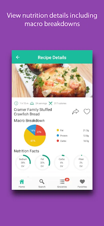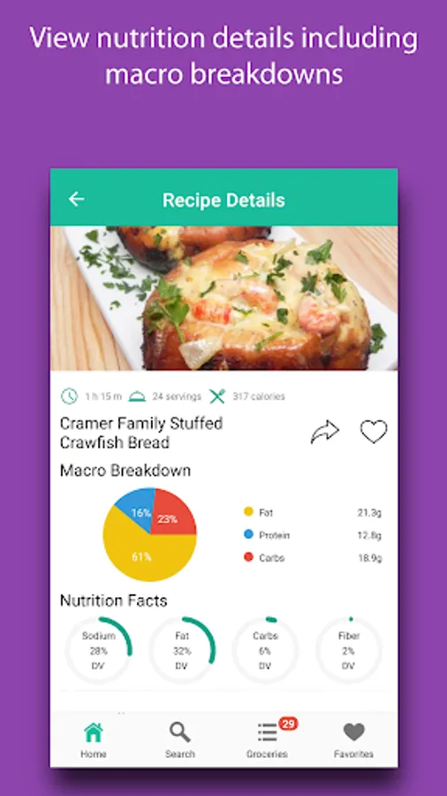 View nutrition facts, macro breakdowns, and cooking directions for any recipe.