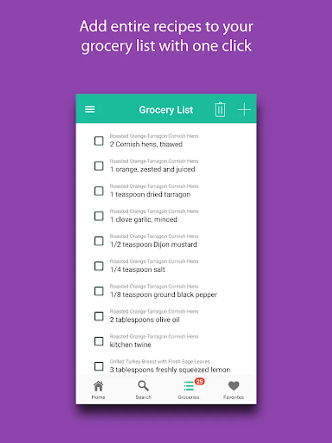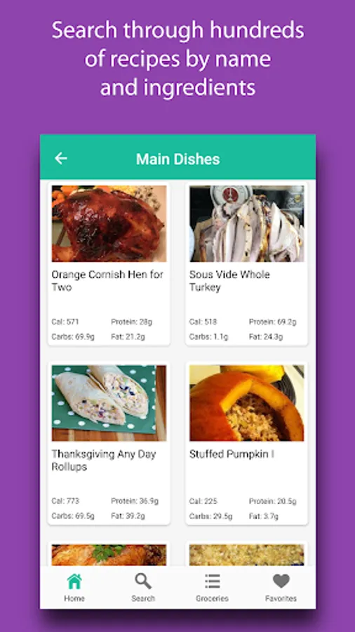 Thanksgiving Recipes is a simple way to browse hundreds of recipes, create grocery lists, and save your favorite meals. Regardless if you are looking for recipes for a large Thanksgiving feast or a dessert to take to the potluck, Thanksgiving Recipes can help you find exactly what you are looking for. The app includes full nutrition facts, macro breakdowns of each recipe, and cooking directions.