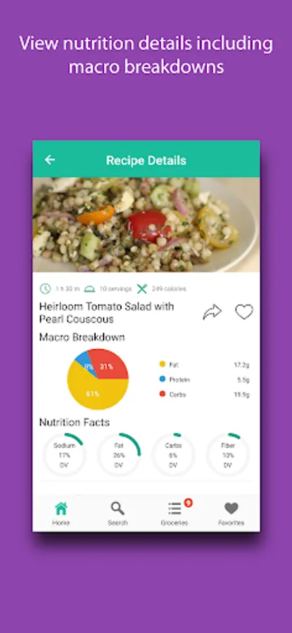 View nutrition facts, macro breakdowns, and cooking directions for any recipe.