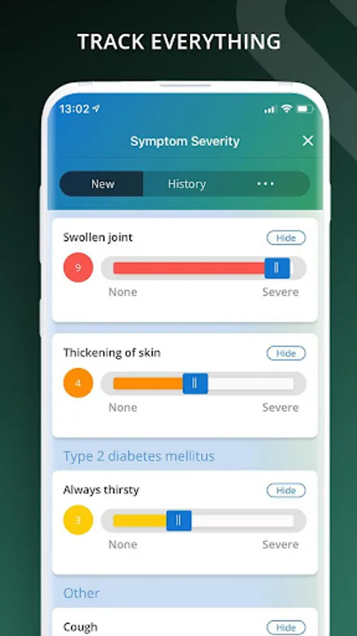 100s of condition, health, exercise and lifestyle trackers. Set goals and track your progress with beautiful charts that keep you on track.