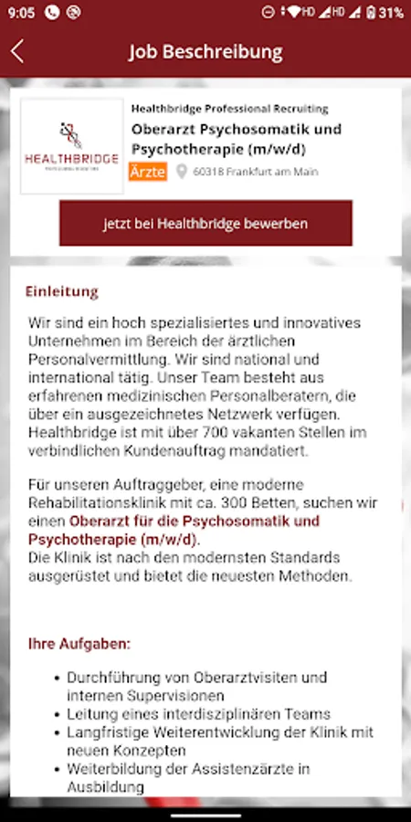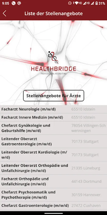 Deutschlands App für Arzt-Jobs. In dieser App können Sie verfügbare Stellen im Bereich Medizin suchen, finden und sich bewerben.
