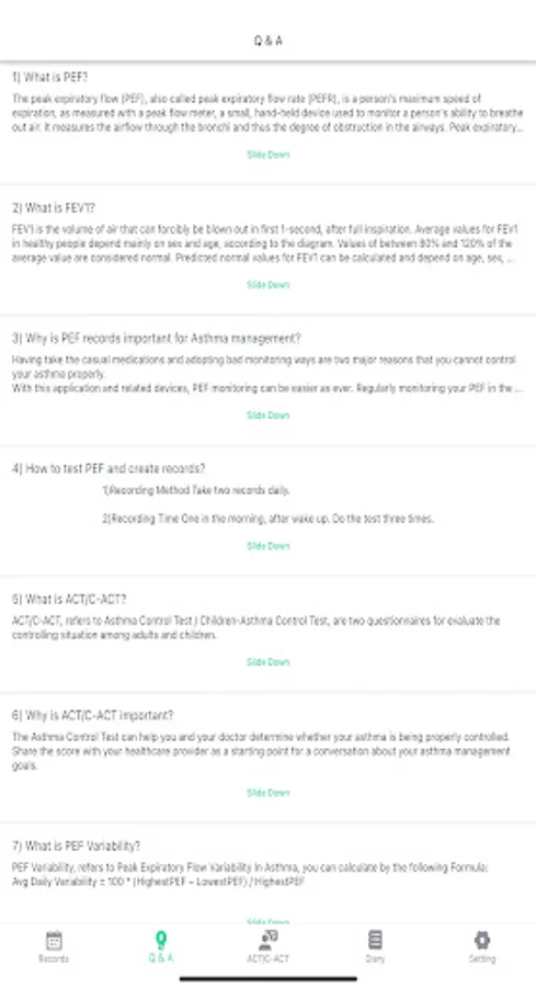IMPORTANT: This application *is not* a Peak Flow Meter and thus will not allow *making* reading of your peak flow. You need to use your own calibrated and certified Peak Flow Meter or ask your doctor to do a reading for you. This app contains information about medical conditions and treatments. The information is not advice and should not be treated as such. The medical information on this app is provided “as is” without any representations or warranties about the medical information. You must not rely on the information from this app as an alternative to medical devices for your doctor or other professional healthcare providers. You should consult your doctor or other professional healthcare providers if you have specific questions about any medical matter. You should seek immediate medical attention if you think you may be suffering from any medical condition. You should never delay seeking medical advice, disregard medical advice or discontinue medical treatment because of information from this app.
