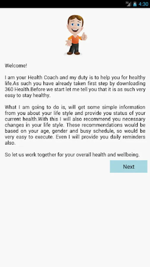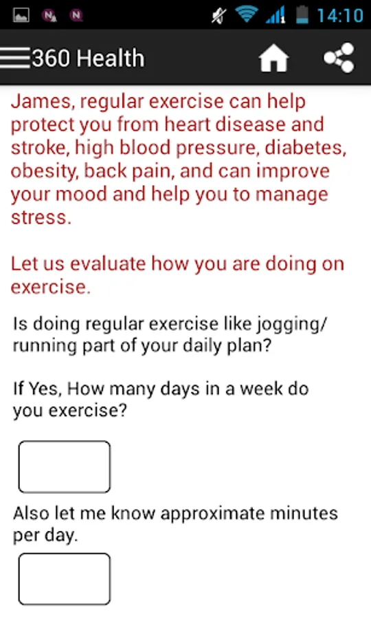 360 Health takes simple inputs about your current life style and provides you a status of your current health through informative Health Card. Wherever necessary you are suggested with modification in life style with regular reminders to make that happen. You will also get useful Education Tools relevant to your way of living. These Education Tools are in the form of Video, Audio and Text.