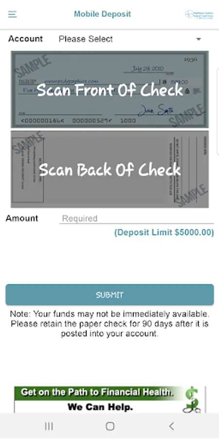 Easily manage your internet banking with the Healthcare mobile app. This app was designed to flow easier and look better than ever. Check your balances on the go with a simple swipe from the app icon. Quickly sign-in using touch ID or your password for specific account information. Breeze through transactions, payments, transfers, and make deposits from your phone or tablet.
