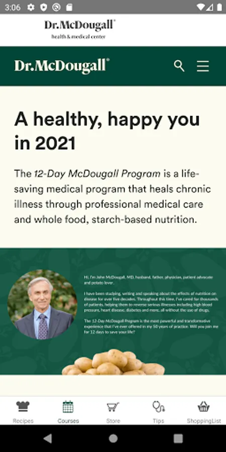 McDougall Cookbook on Android has been completely redesigned! Discover over 1,000 healthful and delicious McDougall recipes. Among the helpful tools are a Search feature, Shopping List, Favorites list, and Print capability. The app features valuable health and kitchen tips, information on upcoming McDougall courses.