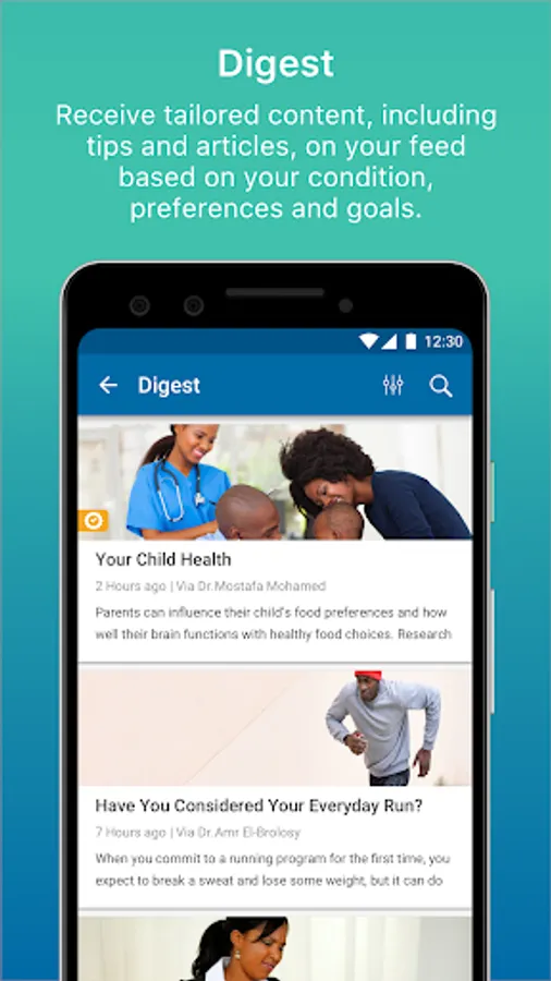 ¬ Digest: Receive tailored content, including tips and articles, on your feed based on your condition, preferences and goals.