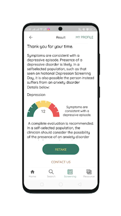 The screening answers are deleted once complete. The app can be used over and over to assess the user's mental health. The app can also be used to assist someone in assessing another person's mental health.