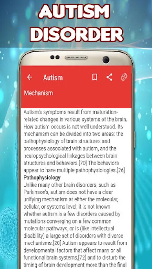 This exclusive app will help to understand the Autism Disorder symptoms, Autism Disorder management, Autism Disorder causes, Autism Disorder diagnosis, Autism Disorder Prognosis, Autism Disorder Epidemiology and history.