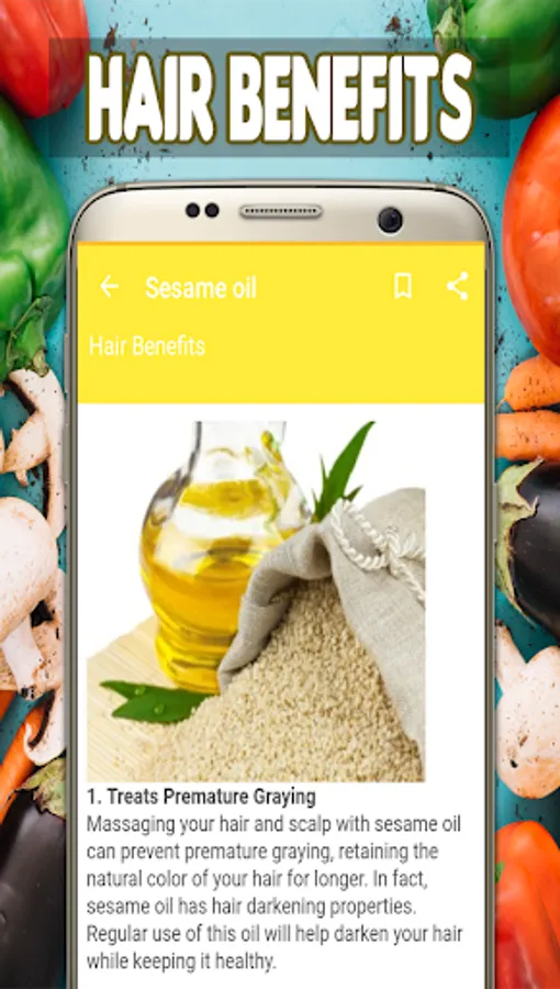 Learn the Sesame Oil health benefits with this app. The health benefits of sesame oil include its ability to improve hair and skinhealth, help in bone growth, reduce blood pressure, maintain good hearthealth, manage anxiety and depression, protect infant health, cure dental problems, prevent cancer, improve the digestive process, and lower inflammation. This app covers various topics like Sesame Oil for hair loss, Sesame Oil for weight loss, Sesame Oil for skin, Sesame Oil for Diabetes, Sesame Oil nutrition, and etc.
