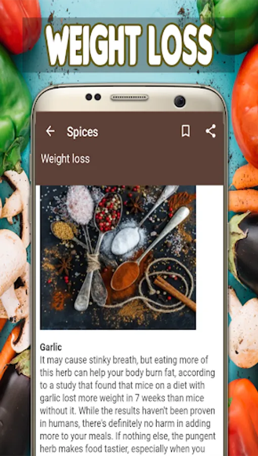 Learn the Spices health benefits with this app. The health benefits of spices are too extensive to list, since, between all of the spices available in the world, they encompass almost every element of health, and have been shown to protect your body in some way. The most important ways that they protect the body include their ability to fight infection, boost the immune system, reduce inflammation, prevent cancer, improve heart health, induce sweating, keep skin healthy, regulate the metabolism, detoxify the body, lose weight, increase appetite, strengthen bones, reduce stress, increase digestion, protect against dozens of dangerous diseases, cure colds, protect oral health, contribute to a healthy diet, balance the hormones in our body, and countless other important benefits! Spices are monumentally important and tremendously delicious, so let’s learn a bit more about them. This app covers various topics like Spices for hair loss, Spices for weight loss, Spices for skin, Spices for Diabetes, Spices nutrition, and etc.