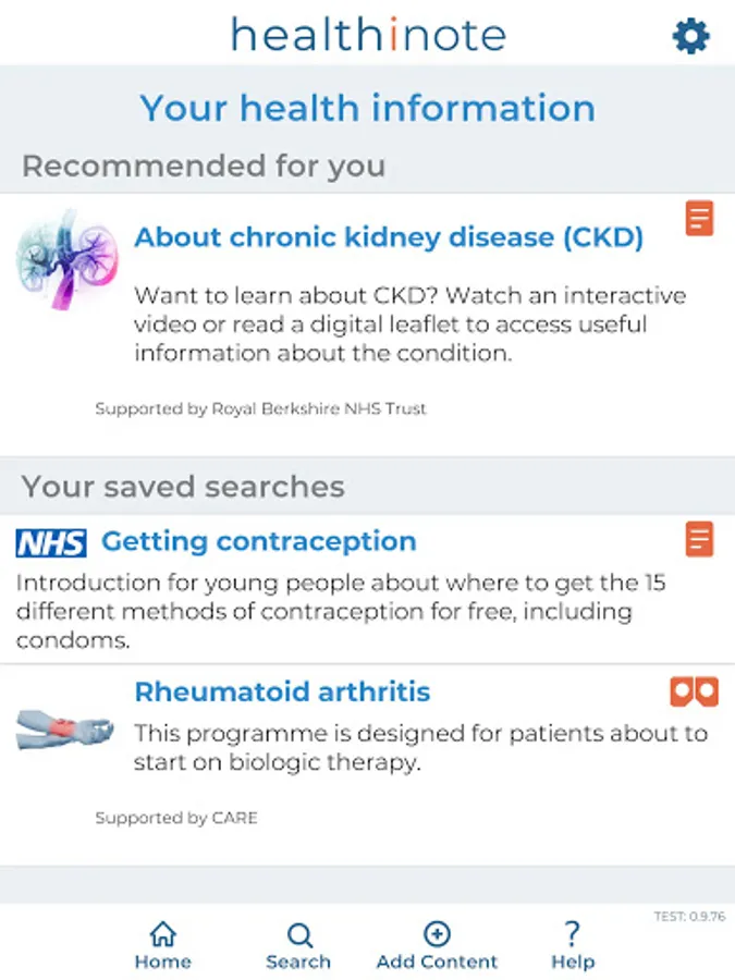 Search for trusted health information or tools to help you to understand and manage your health. Or receive health information recommended to you by you Doctors, nurses or pharmacists.