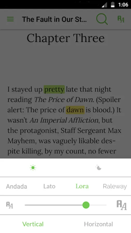 The The Fault In Our Stars Reader app provides a user-friendly interface that makes reading the book easy and convenient. You can customize the text size, font, and color to your liking and use the bookmark feature to keep track of your progress. The app also allows you to highlight passages and take notes to help you remember your favorite parts of the story.