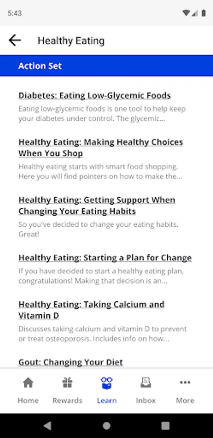 • To do list: a prioritized list of healthy actions you can take to earn rewards.