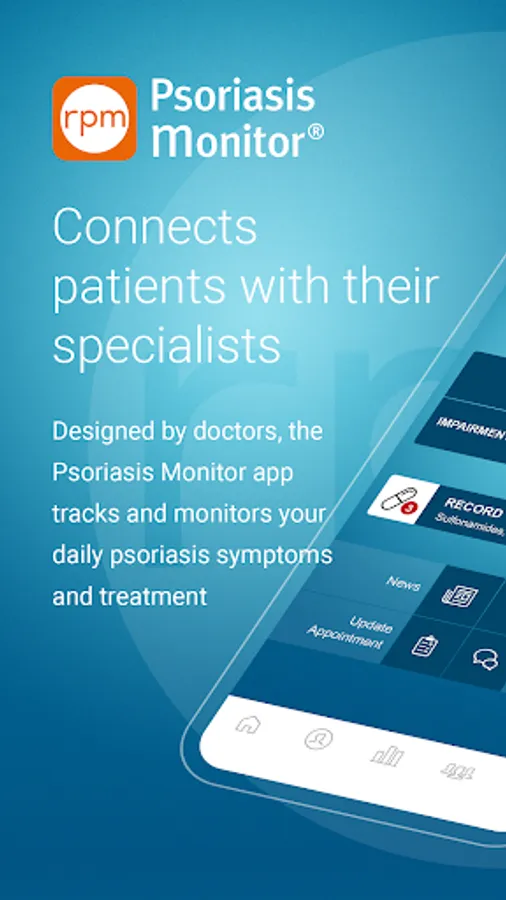 Psoriasis Monitor is designed by doctor’s in concert with RPM Healthcare's founders' 30+ years of patient education expertise. This is the first Psoriasis monitoring app that will allow you to connect to your doctor. Psoriasis Monitor provides users with a clean interface and enhanced reporting, which simplifies tracking your skin condition. More than just an intuitive tool for tracking your flare-ups, their severity, duration and triggers, Psoriasis Monitor allows you to access the support of your doctor (or our Psoriasis Navigator) and allows your doctor to follow your progress between visits.
