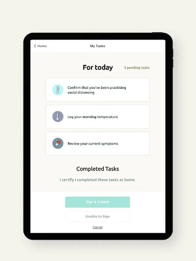 - Once tested, daily tasks will be provided to help monitor symptoms for ongoing recovery.