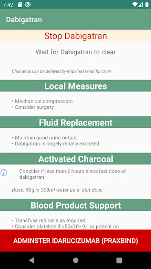 Bleeding is a potential problem with any anticoagulant and can be complex to manage. The Dabigatran App provides advice about which treatments to use for both minor and major bleeding.