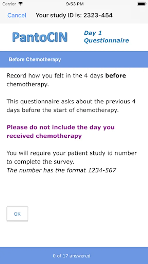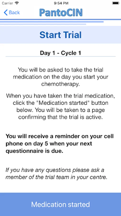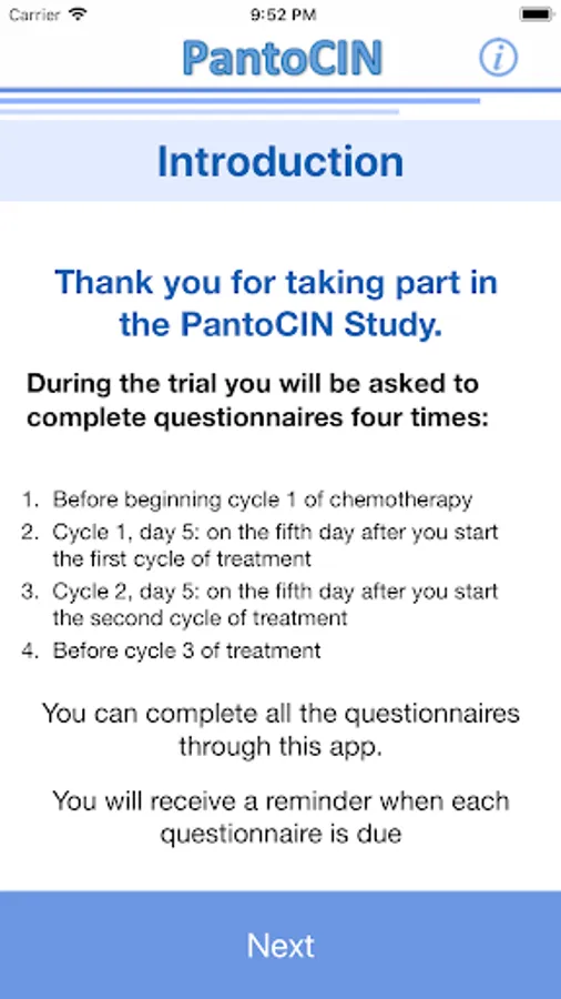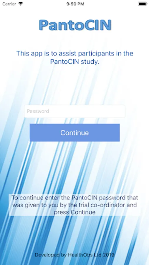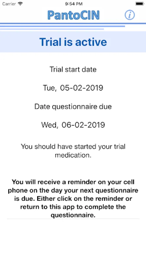 This app provides reminders for participants in the PantoCIN study, and enables participants to answer questionnaires.