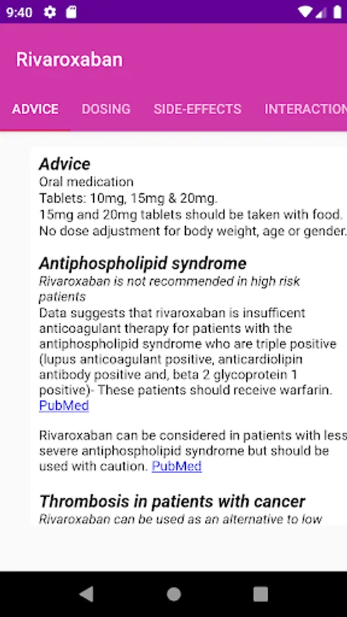 The Rivaroxaban App offers the correct dose for the correct indication in line with the published data sheet.