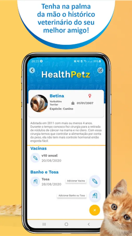Have control of the latest vaccines, baths / grooming, veterinary reports and medication monitoring.