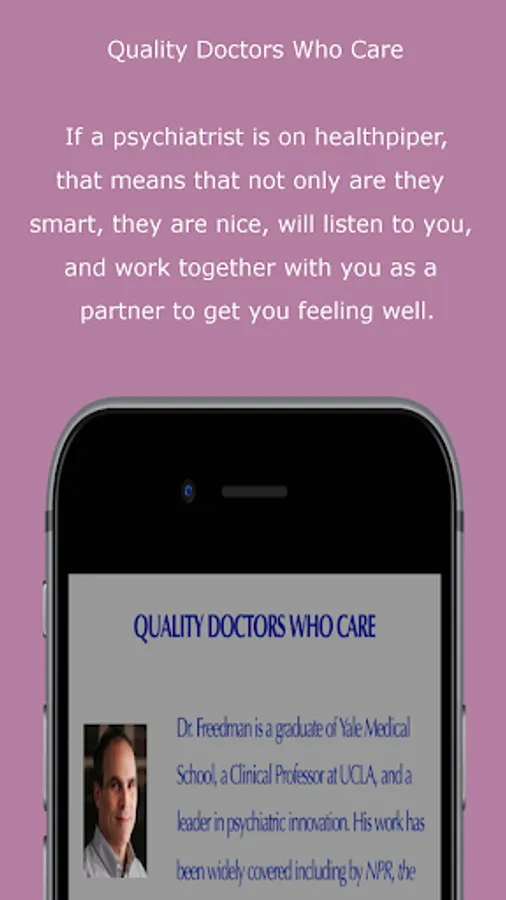 A wonderful doctor needs to not only to be an expert, they also have to be welcoming, kind, and good-natured. We constantly are scouring the country for terrific doctors- if a psychiatrist is on healthPiper, that means that not only are they smart, but also that they are nice, will listen to you, and work together with you as a partner to get you feeling right.