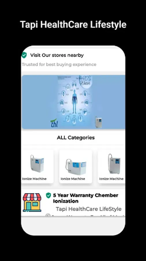 -TAPI HEALTHCARE LIFESTYLE RIVATE LIMITED Alkanir provides best Ionizer machine, Alkaline Ionizer Machine, Thl Ionizer Water, Alkaline, Ionizer,ph balance, weight loss,cancer resistance,active oxygen,micro clustering,H2O, orp, minerals, skin health, healthy water,pure water, hydration,liver health, brain health, energy level, immunity. Storage Capacity- 50L 11.5 PH - Vagetable Wash, Fruit Wash, Rice Wash 9.5 PH - Useful for gas, acidity, cancer patient 8.5 - regular water use like kitchen etc, 7.5 - useful for children and pregnant Woman extra water is use for wash room cleaning, hand wash,face wash,hair wash etc 5 years Warranty 1 Year Garanty From Manufacturer ** Thank you for using our application!!!!!!! *** Have Nice Day,,,,,,,,,,