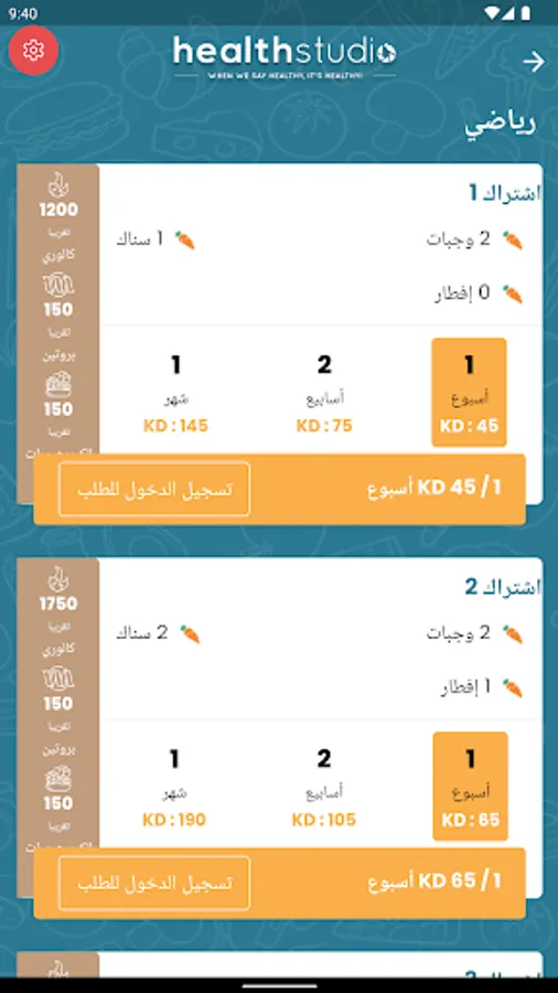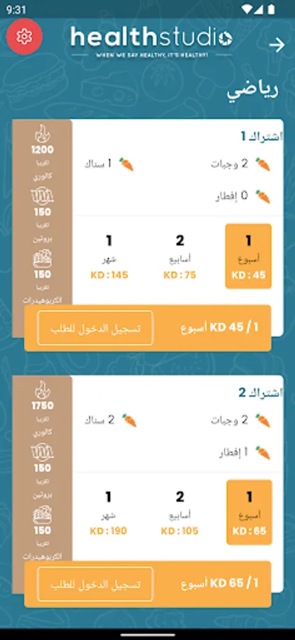 يعد مطعم هيلث استديو أحد أسرع الشركات نموًا في صناعة المواد الغذائية في الكويت. يقدم جميع الوجبات الصحيه والطازجة للاشتراك الشهري. يتيح لك التطبيق اختيار وجباتك وإخبار ما لا يعجبك وتخصيص متطلبات البروتين والكربوهيدرات لتناسب احتياجاتك. قم بتنزيل التطبيق وابدأ رحلتك إلى نمط حياة صحي