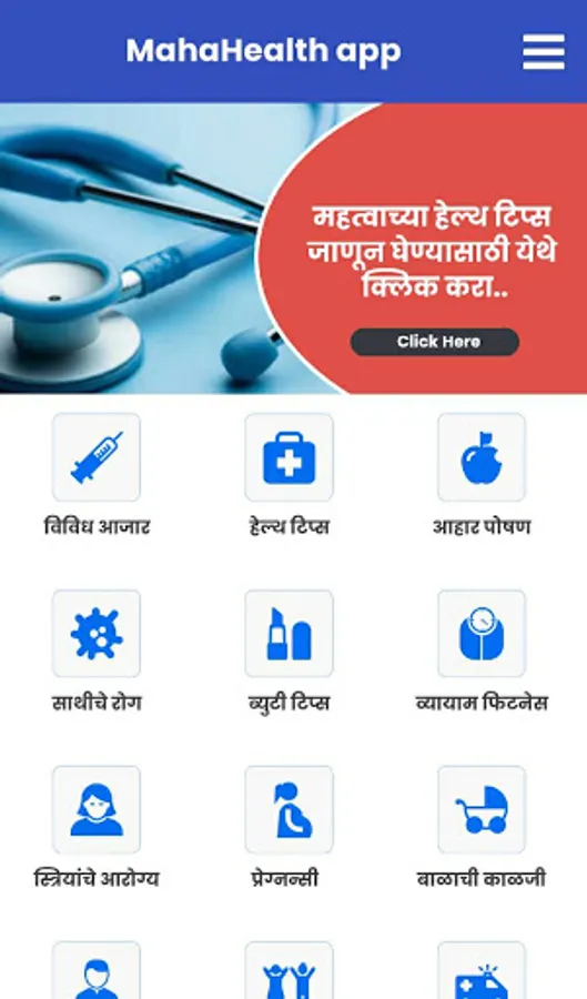 This app contains information about diseases and conditions, diet and nutrition, pregnancy, babycare, women health, exercise, weight management, beauty tips etc. All of information in Marathi language.