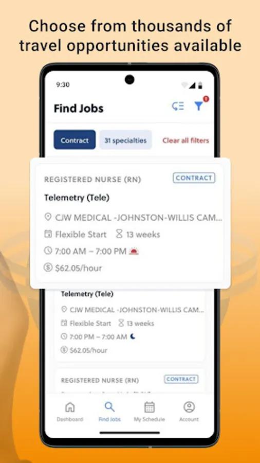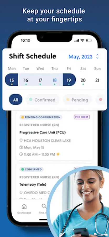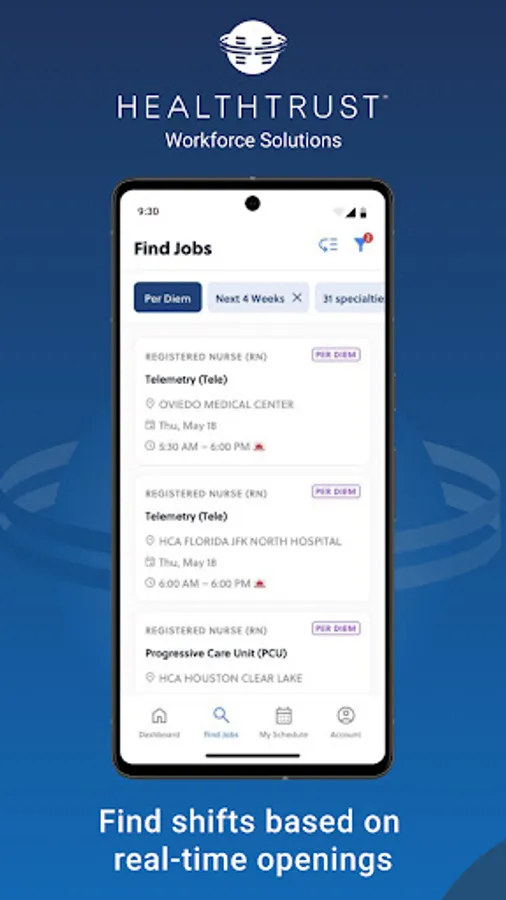 Go HWS Mobile has real-time visibility of open shifts, as well as contract jobs, at locations across HealthTrust’s network. It’s designed specifically for the flexibility you need to schedule jobs while managing your busy life.