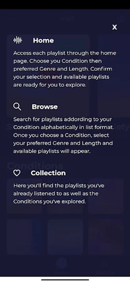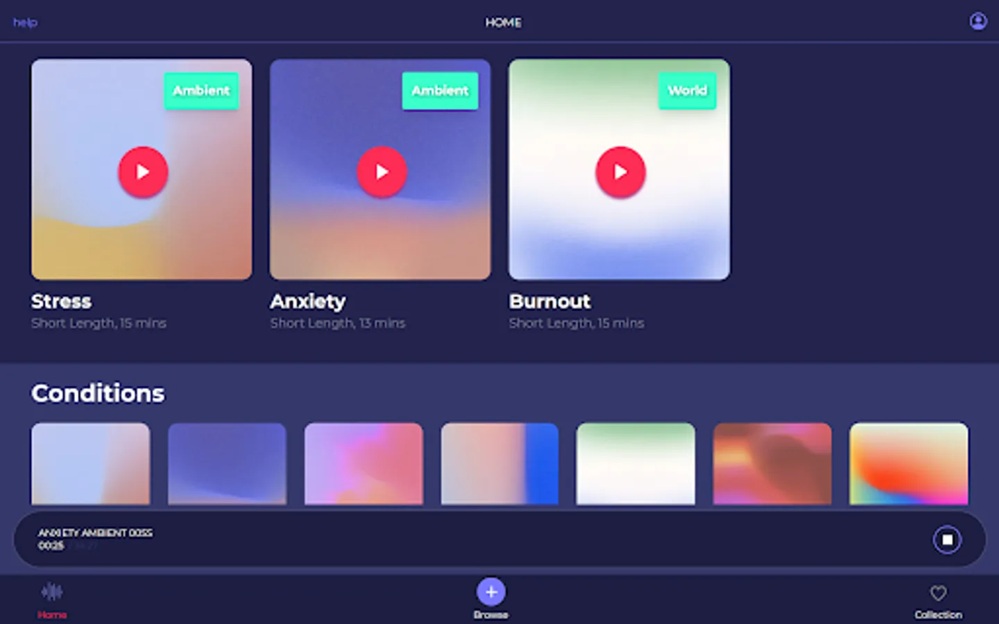 This version of our app provides you with access to free playlists that help you unwind anytime, anywhere. Specific playlists are available to help improve your sleep and reduce anxiety, stress, and burnout.