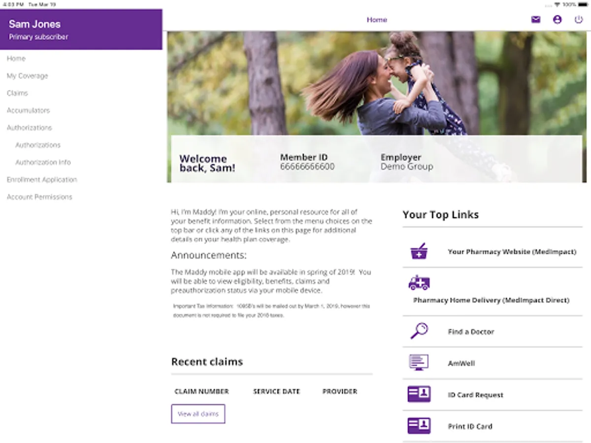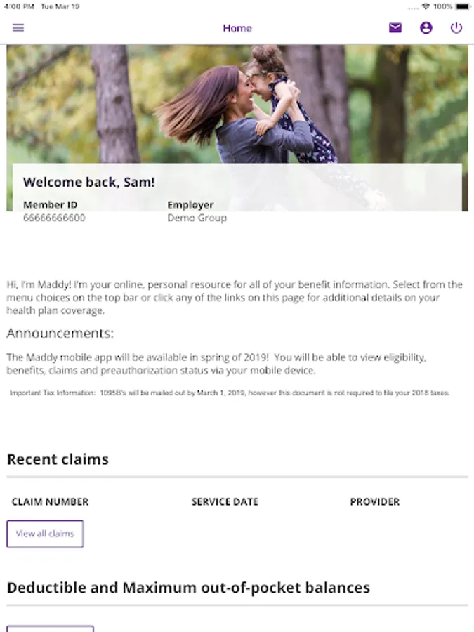 With Maddy, you can check a claim, view your virtual member