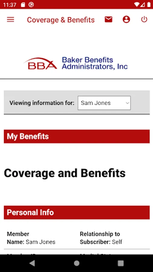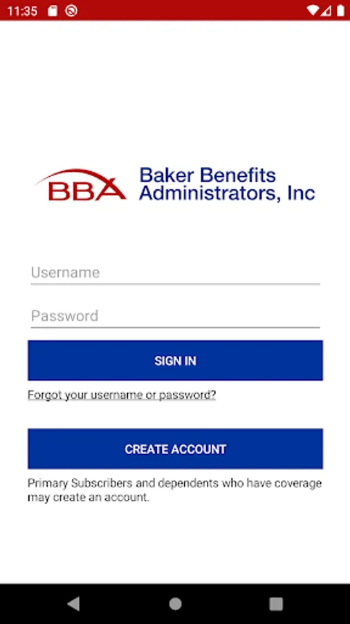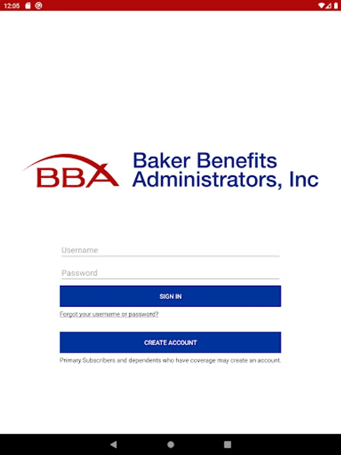 You must sign in to access the app’s features. Only members whose employers use Baker Benefits Administrators are allowed to login and use the app.