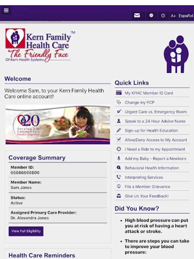 You can see your KFHC information and use the self-service tools. You can also see if you are due for a checkup or other health action.