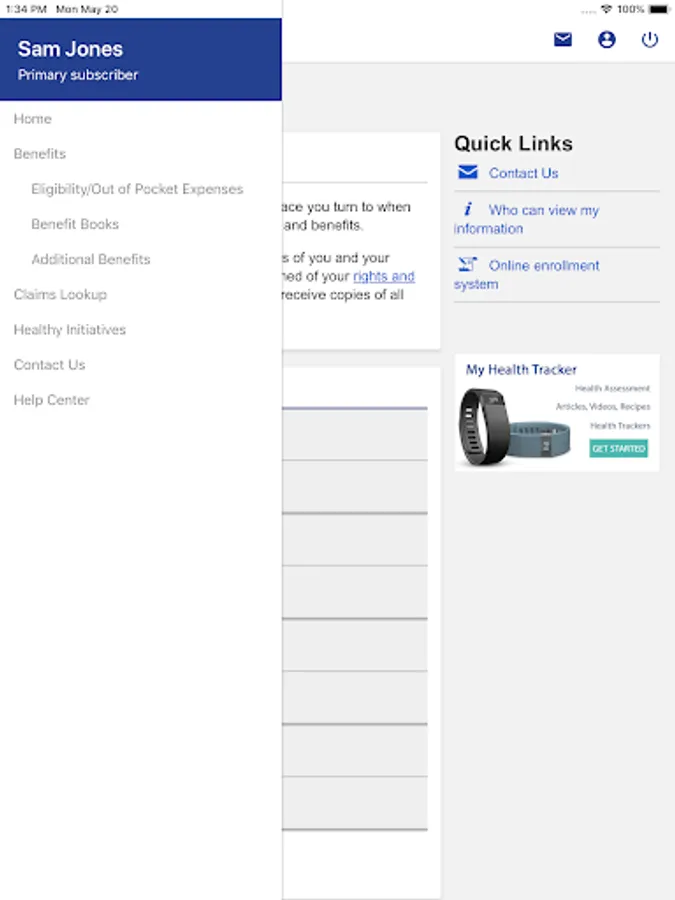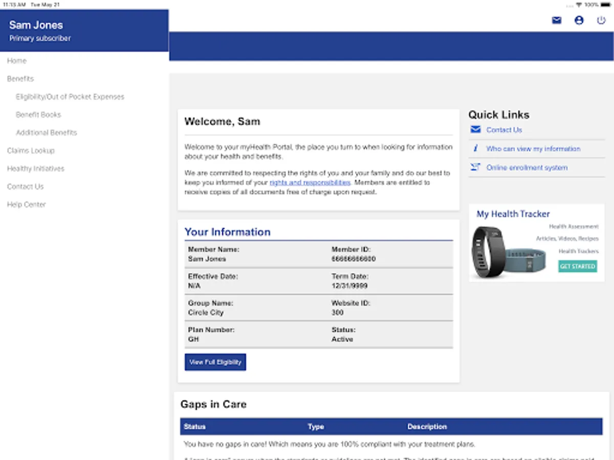 My Eligibility (Eligibility and Deductibles/Out of Pocket information), ID Card (ID Card Information), Claims (Medical, Dental, Lab, Pharmacy), Debit Card (Flex, HRA, HSA accounts), Provider Search, secure Customer Care email
