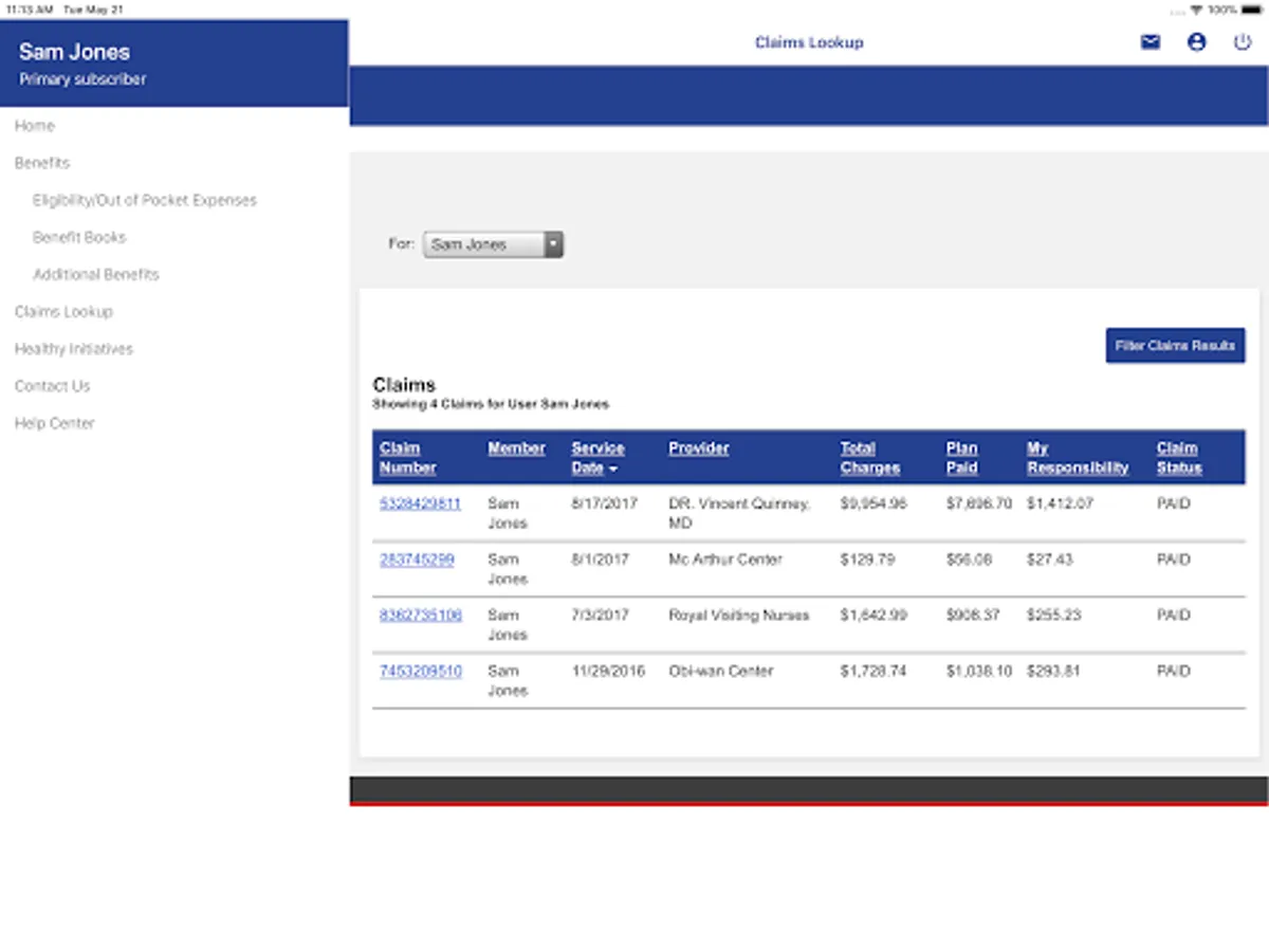 See your ten most recent claims. Get a detailed view of each one. Or look up specific medical, dental and pharmacy claims by member name.