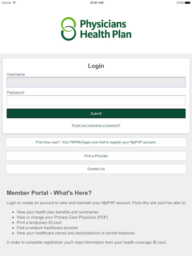 You must sign in to access the app’s features. Only members whose employers use MyPHP are allowed to Login and use the app.