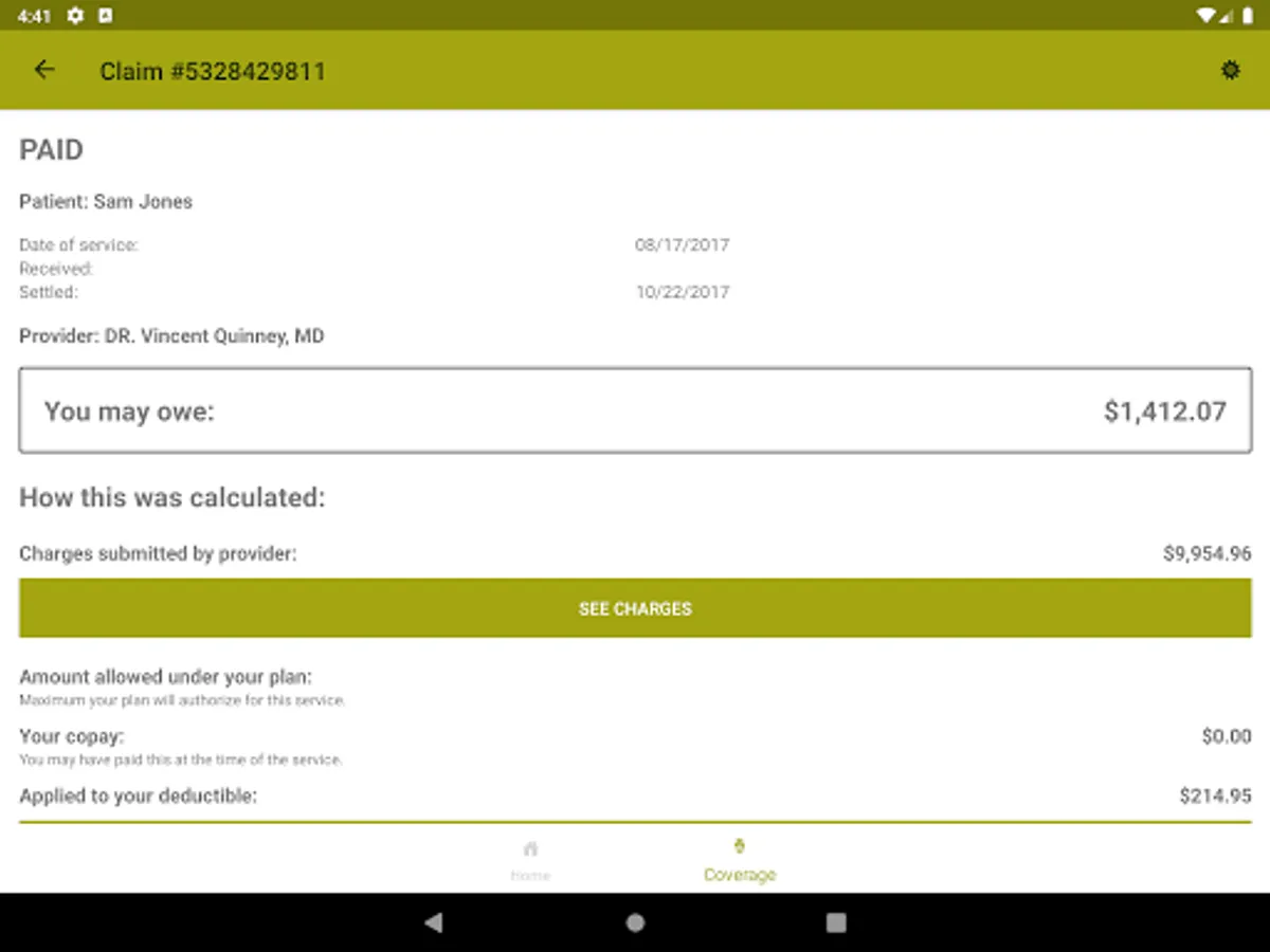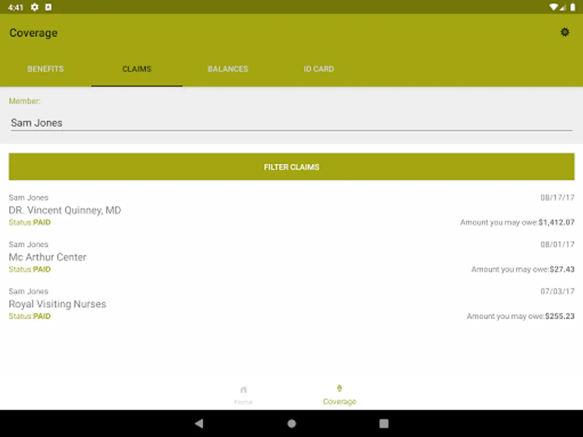 • My Claims–View your most recent claims and get a detailed view of each one.