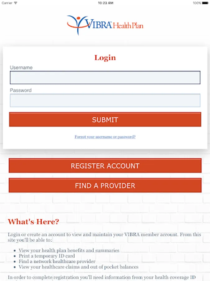 You must sign in to access the app’s features. Only Vibra Health Plan Medicare Advantage (MA) members are allowed to Login and use the app.