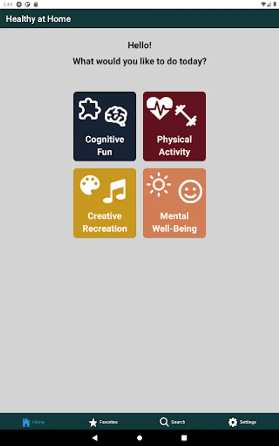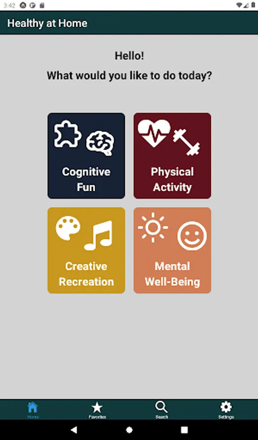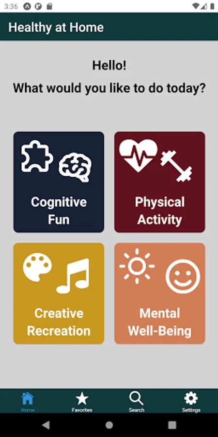 The mission of the Healthy at Home app is to act as a central hub of easily accessible free information, resources, and activities available to enjoy from the comfort of one's home. Great for anyone who is staying home and looking for fun and healthy things to do! People with all ranges of mobility and function will a variety of options to choose from to including: