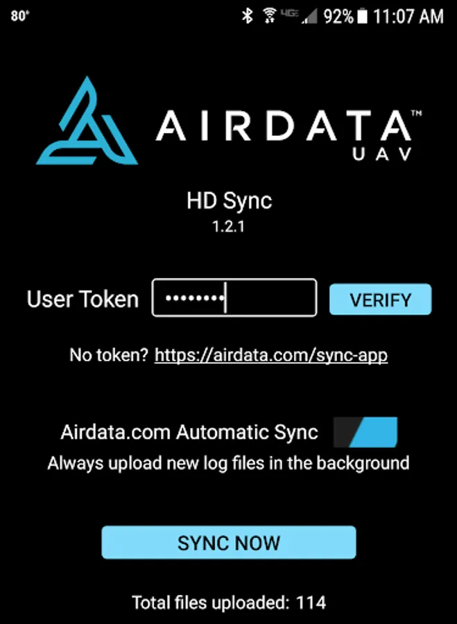 Before using HD Sync, make sure you create an account at Airdata.com and get your "Auto Upload Token" under the account settings. All your flights remain private, unless you choose to share them.
